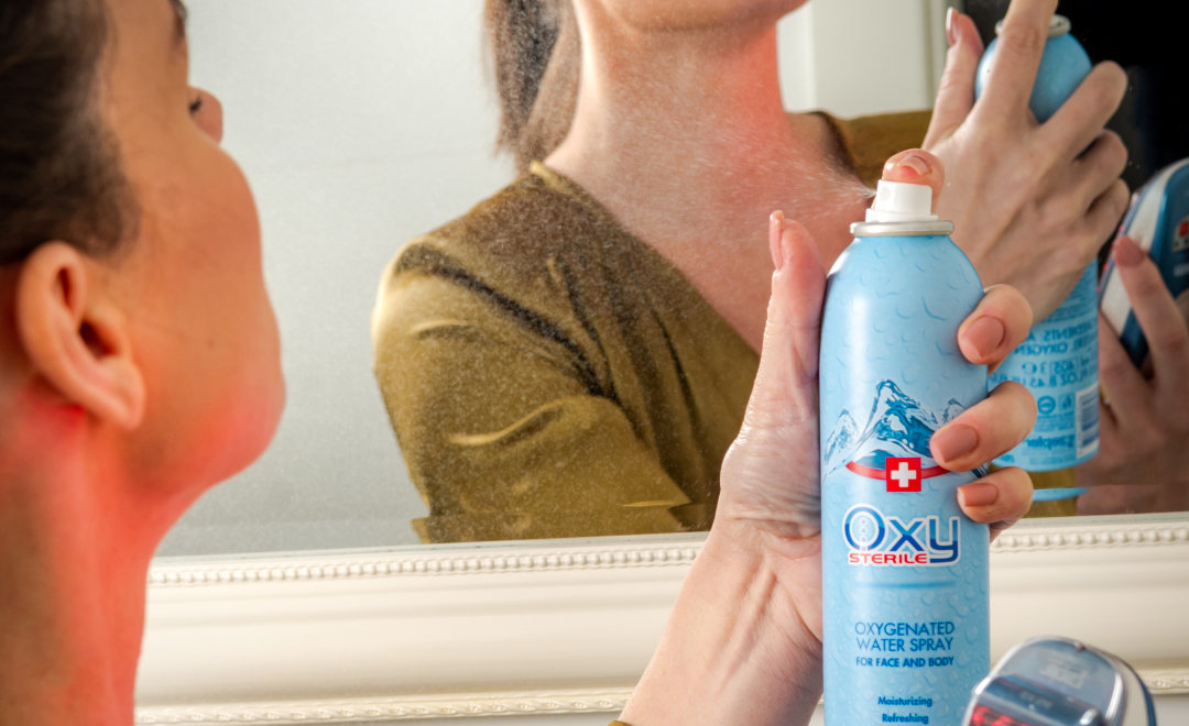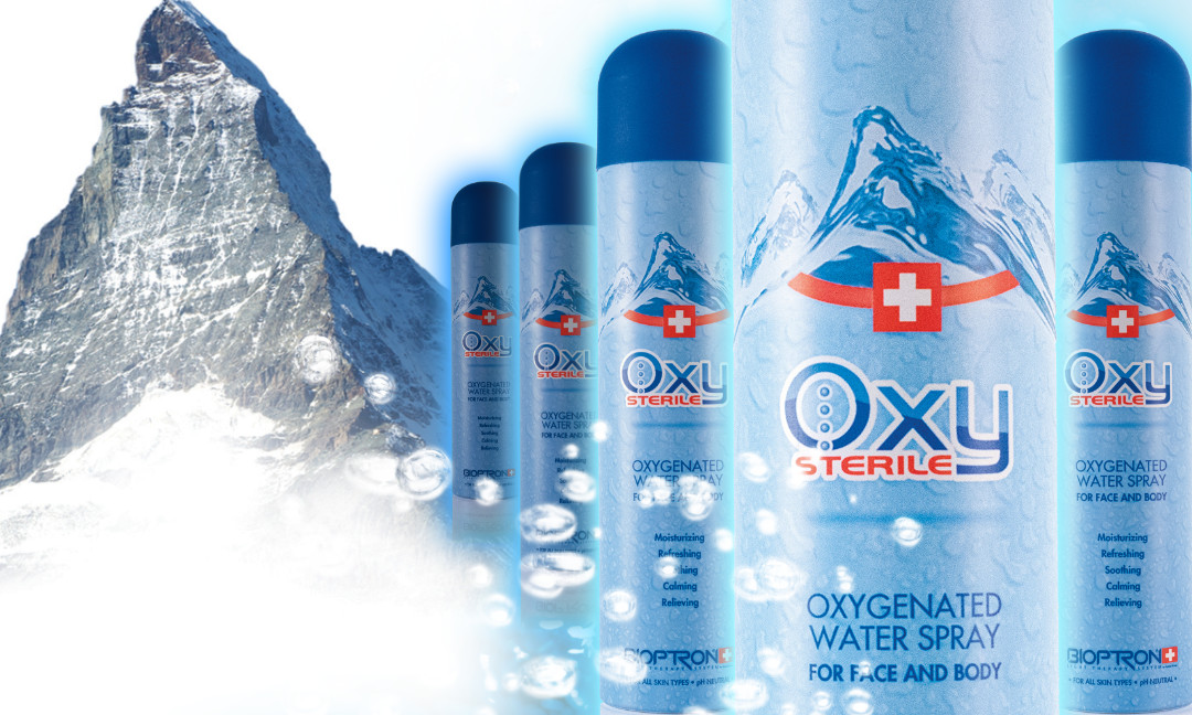 The Swiss-made Oxy Sterile Spray is pure water enriched with a concentration of oxygen for moisturizing and refresh.