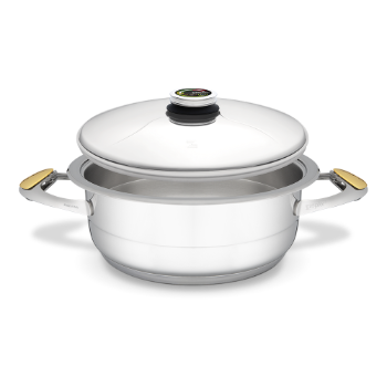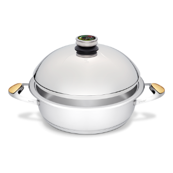 HEALTHY COOKING SYSTEM: Zepter has developed a coking process where the steam released by the food rises to the top, condenses upon contact with the lid, which is always cooler than the rest of the pot, and drips down onto the food. The process goes on undisturbed, until the food is perfectly cooked. This is called the Zepter Closed Circle, and it guarantees healthy food preparation, without adding water or fats, and always at low temperatures.